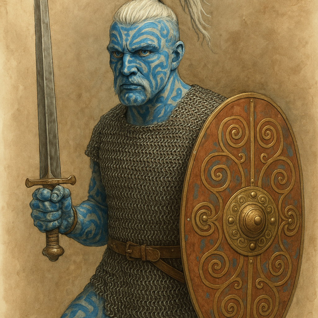 Keltische Krieger waren für ihre langen Schwerter bekannt, die sie als Hiebwaffen einsetzten. Sie benutzten Schilde unterschiedlicher Art, darunter der Battersea-Schild. Einige Krieger trugen Kettenhemden, die jedoch selten und teuer waren. Viele trugen Lederrüstungen. Sie nutzten Färberwaid (eine Pflanze, die auch zur Herstellung von Indigo verwendet wurde) um sich mit komplexen Mustern zu bemalen, was Gegner einschüchtern sollte. Die Haare wurden oft weiß gekalkt, was einen starken Kontrast zur blauen Körperfarbe bildete.